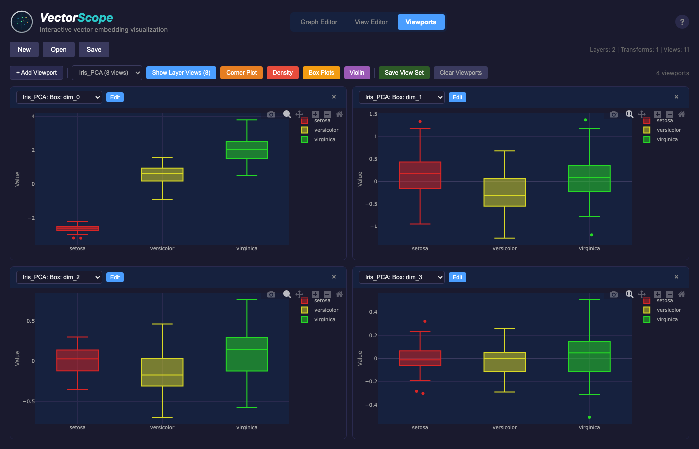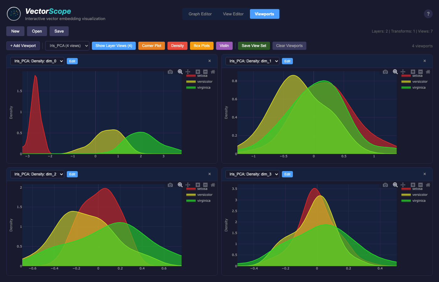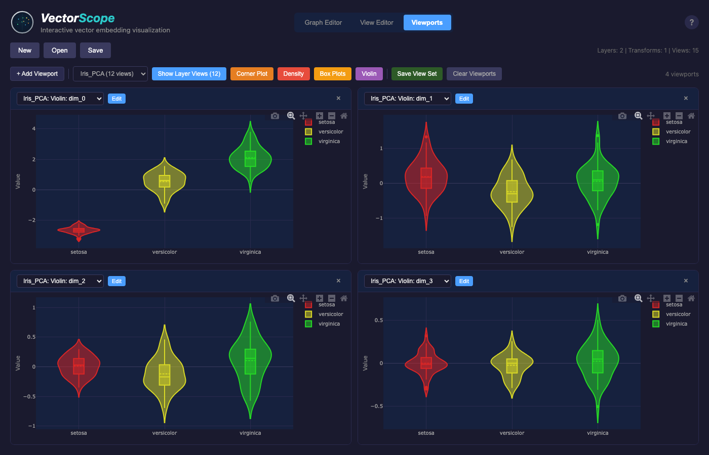 Select a view from the dropdown (e.g., “Iris: PCA”)
